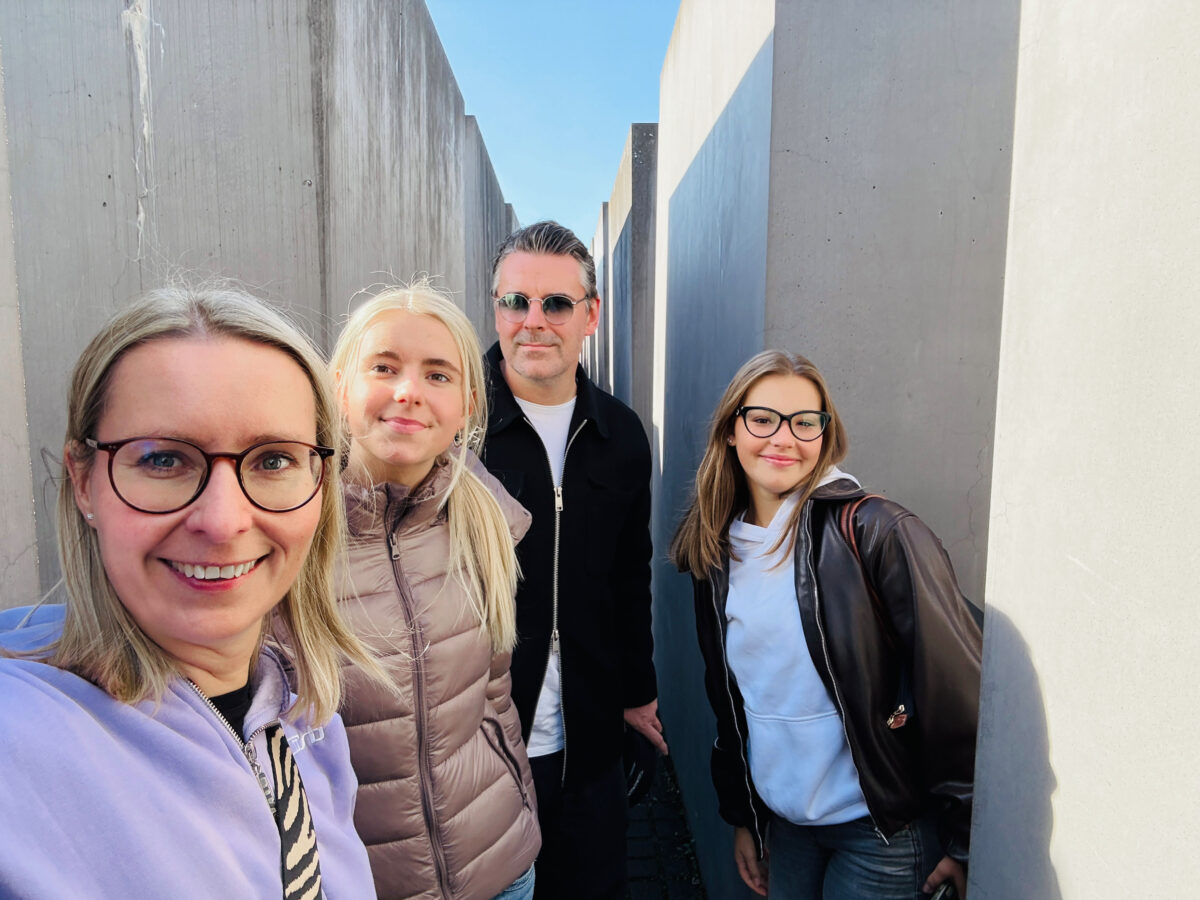 Von der Sightseeing- und Geschichtstour durch Berlin profitierte die ganze Familie. Hier stehen sie mit Martina (r.) am Holocaust-Mahnmal.